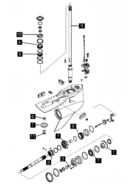 This page is designed to help boaters, mechanics, and commercial fishermen locate high-quality replacement parts for 2004-2013 Mercury & Mariner 3.0L V6 Optimax ProXs Torquemaster 1 gearcases. We provide detailed parts diagrams to help you find the correct seal kits, gear sets, bearing carriers, shafts, shift components, water pump housings, and other components for your gearcase. Whether you need to service, rebuild, or repair your gearcase, replace worn bearings, or repair a leaking seal, this page provides the part numbers and category links to obtain the correct components. OBParts ensures quality, compatibility, and expert advice to get you back on the water!