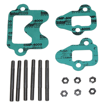 The kit provides all necessary hardware for a secure, vibration-resistant manifold installation, ensuring proper sealing and long-term corrosion protection in marine environments.